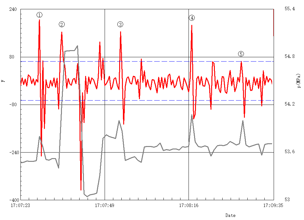 高频数据采集后,设置阈值等参数,在高频压力图中显示压力变化曲线和脉冲变化曲线,确定“压缩-膨胀伴侣波”个数,实现滑套的有效识别,从而能够对通过的滑套数量进行可靠验证。